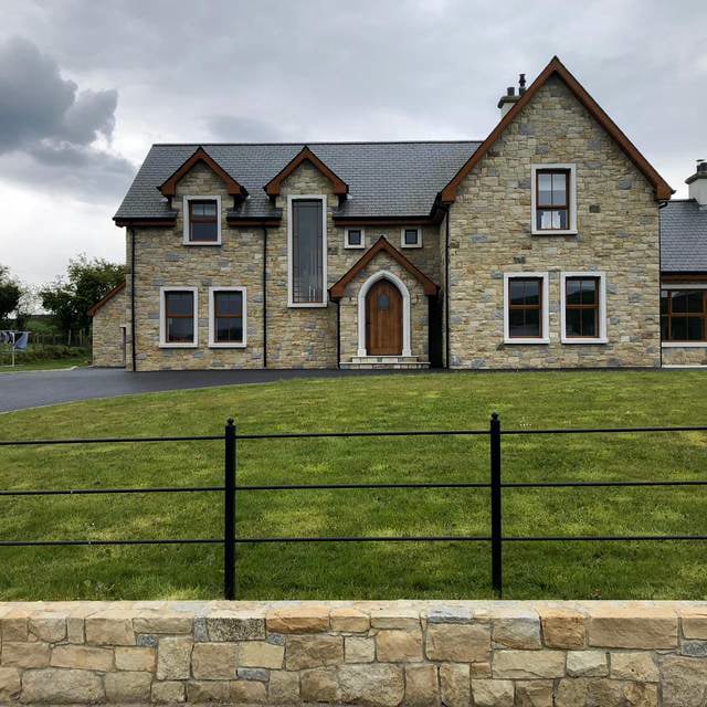 In this image the Grey and Brown Granite have also been added into the stone mix to create a uniqie and varied colour scheme that works excellently with the windows and stone surrounds.